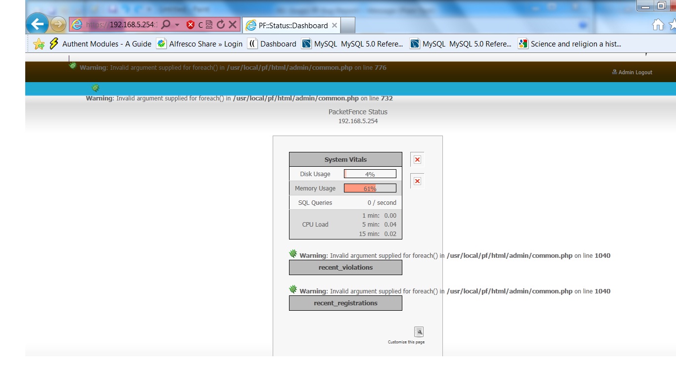 | Additional Information | RedHat 5.3 with Packetfence 3.0.2 , Could not able to view the Dashboard | |||||||