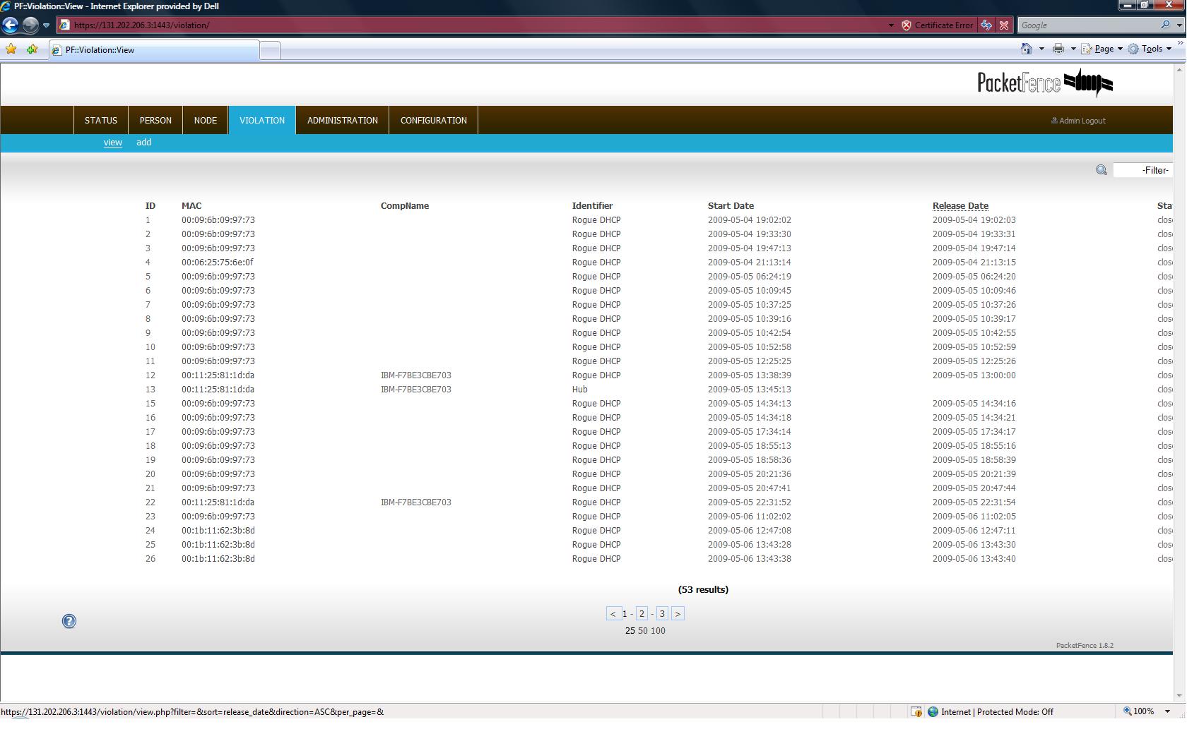 | 0000732 | PacketFence | core | public | 2009-06-15 14:40 | 2012-02-29 10:58 | |||